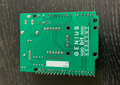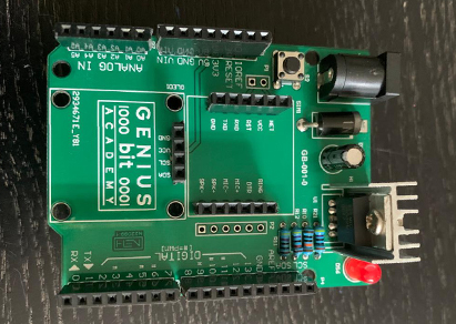 The "Genius Bit Academy" PCB is a versatile development board designed for educational and prototyping purposes. It features essential components for power regulation, microcontroller interfacing, and connectivity options for sensors and peripherals. The inclusion of a GSM module and OLED display enhances its functionality, making it suitable for projects involving remote communication and data display.